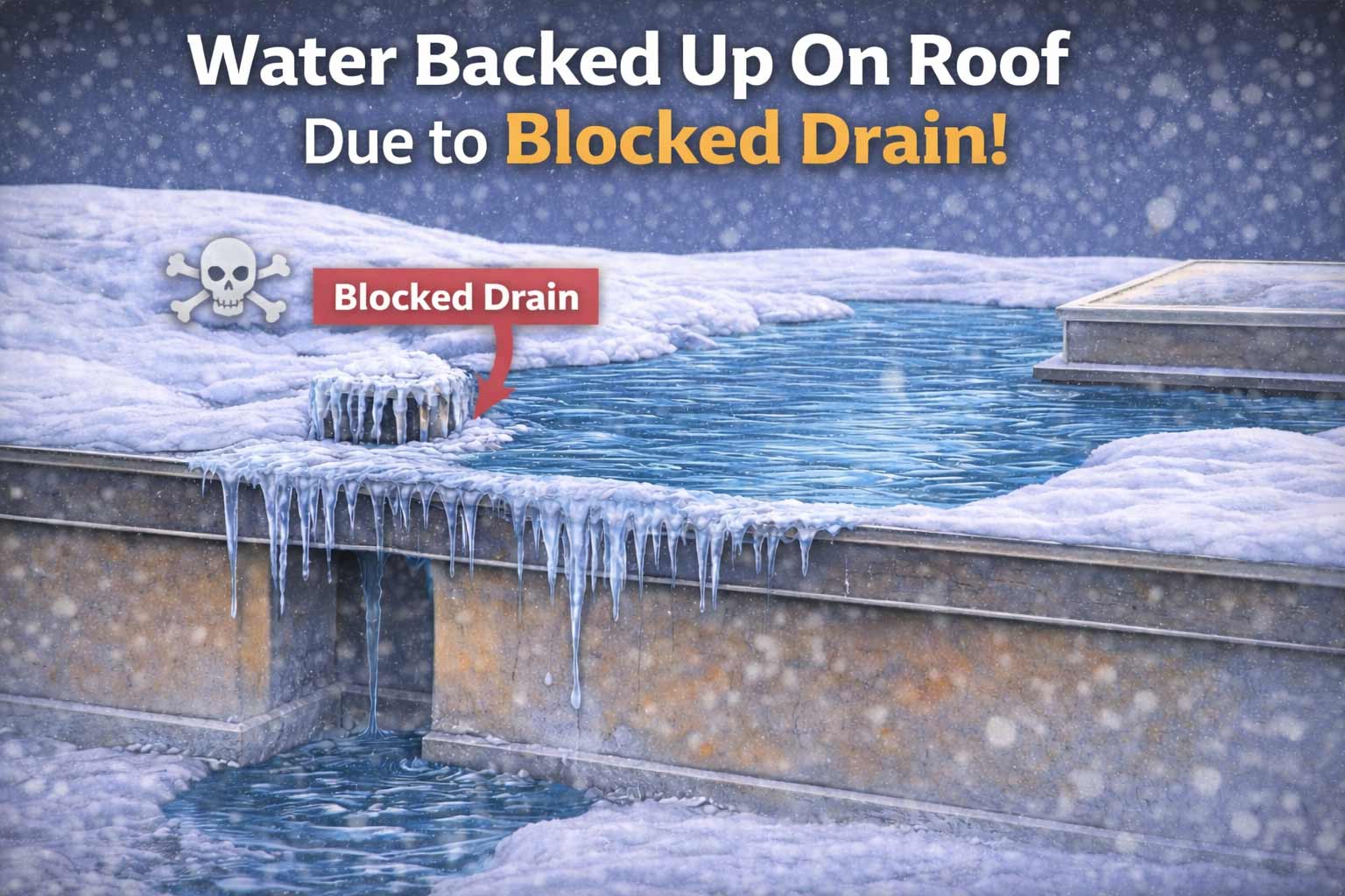 Flat roofs rely entirely on drainage systems. Similar to how Ice Dams can cause problems on your roof, frozen or clogged drains create ponding and ice buildup, which often become the root cause of winter leaks.