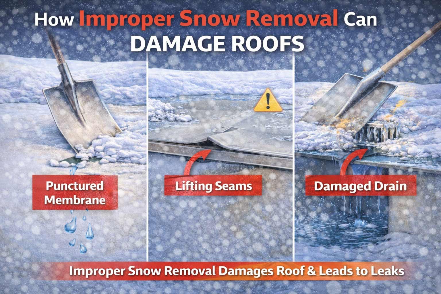 Not only can one wrong shovel scrape cause thousands in damage, it can also void your roof warranty! Many manufacturer and installation warranties are hinged on proper maintenance, and not all maintenance is proper maintenance.