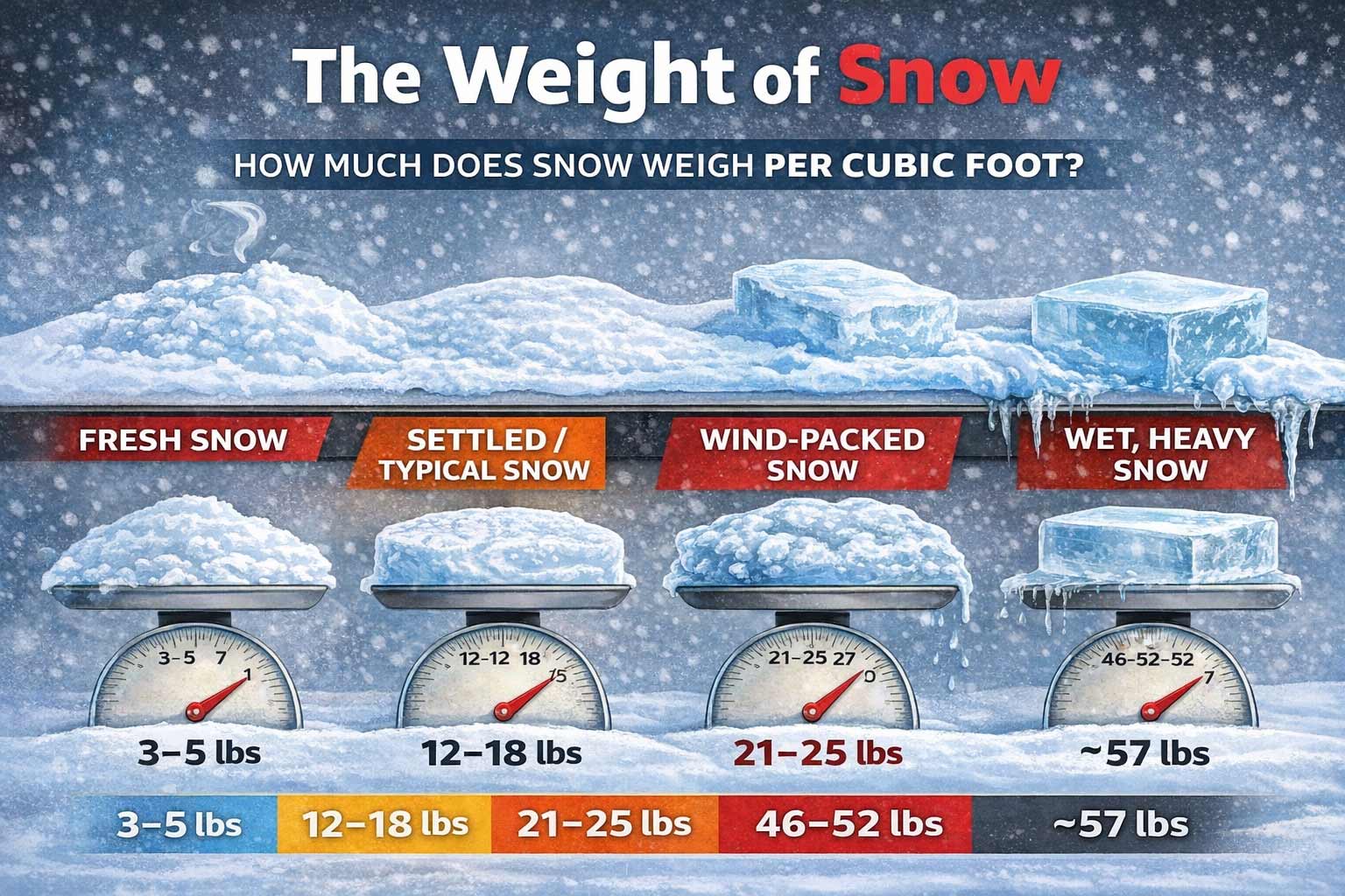 Snow is heavier than it looks. Don’t believe us? We’ve gone ahead and provided the facts thanks to InchCalculator.com.