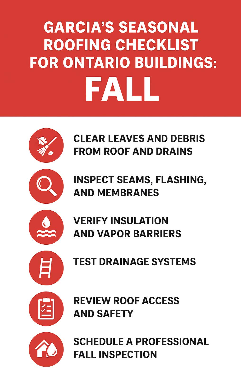 As September turns into October, Ontario building owners face one of the most important times of year for roof maintenance. Fall is a critical transition season: the last chance to prepare your roof for snow, ice, and freeze-thaw cycles.